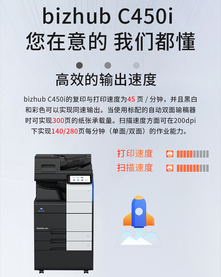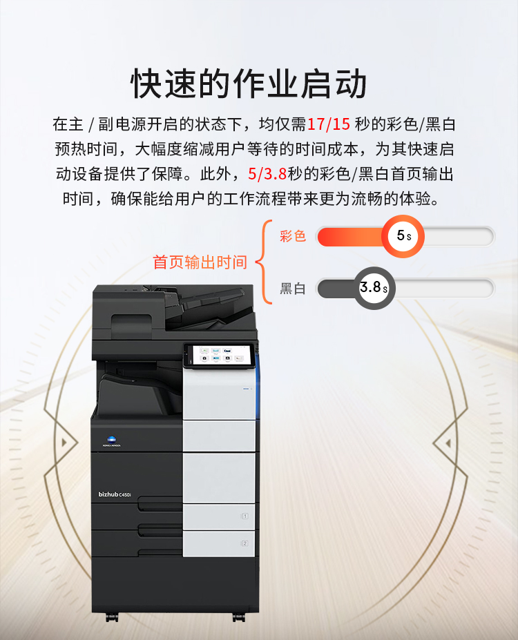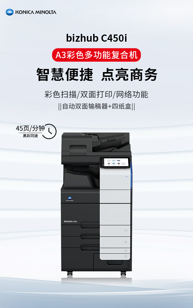 3、打印速度:45頁/分鐘(黑白/彩色)